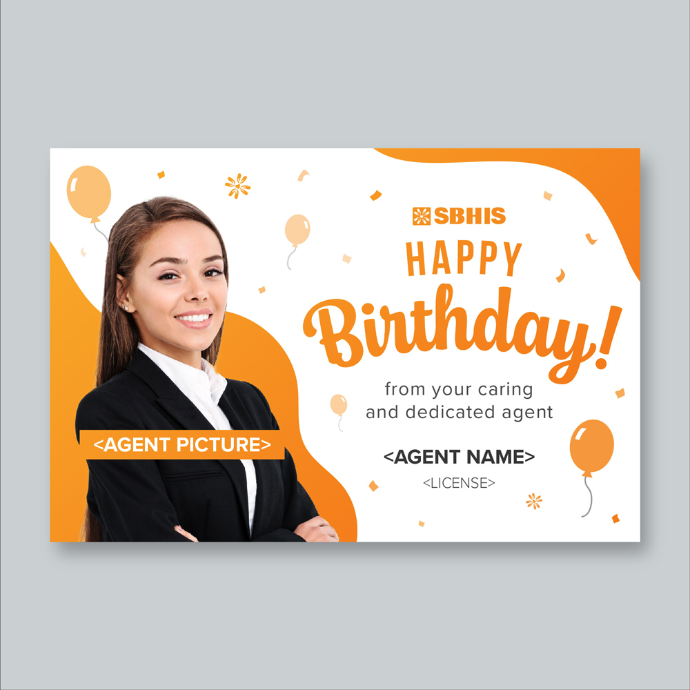 Send heartfelt birthday wishes with our 4x6 inch birthday card! Showcase your agent essential information and professional photo, creating a memorable and professional greeting. 🌟🎉